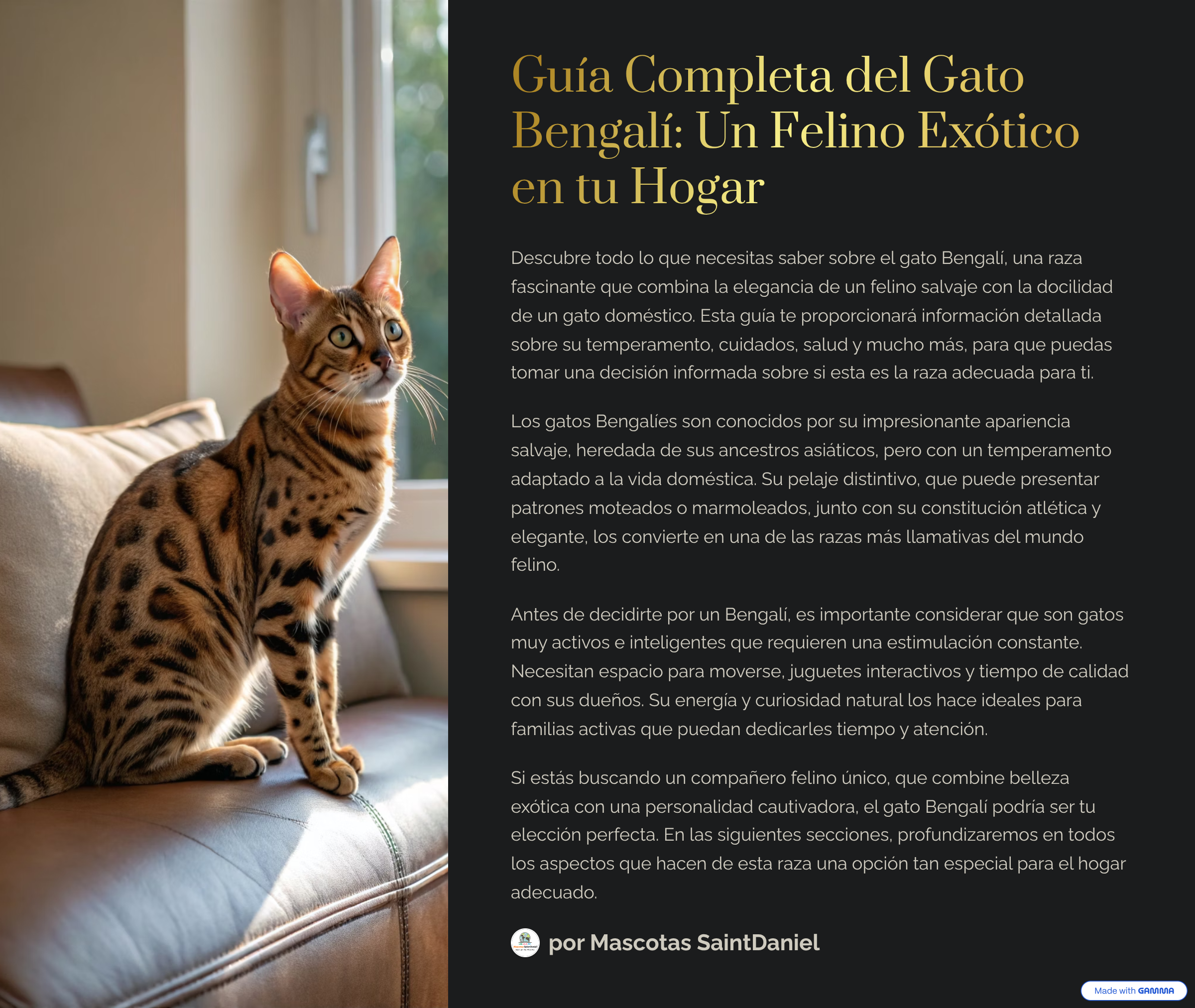 Gato Bengalí: Guía Completa, Temperamento, Cuidados y Vida Activa Posted 13 November, 2025 in Cuidado Animal, Gatos, Tips Relacionado Tags: Como Comprar, consejos, consejos animales, gato bengal, gato bengali, Gatos, Información útil, razas, razas de gatos, sus cuidados y posibles problemas de salud, tips